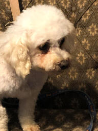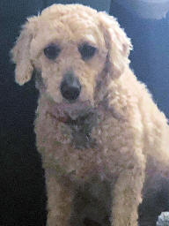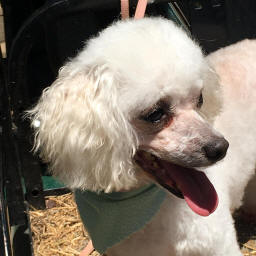 little girl is Tidbit a small Toy poodle. Tidbit is a Mill dog.